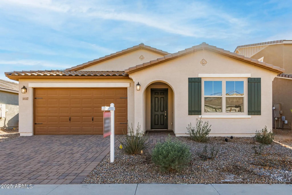 Alexandrite Floor Plan. Structural options include, Paver Driveway & Entryway, 9' Ceiling and 8' Interior Doors, Tankless Water Heater, Gas Stub for Range/Oven, Gas Stub at Back Patio, Soft Water Loop, 8' Garage Door (instead of standard 7'), Garage Service Door and additional window in Master & Great Room. Smart Thermostat and Tech Hub are included. Kitchen has 42'' Premier White Cabinets w/ Hardware, Quartz Countertop, Tile Backsplash, Pendant Pre-Wires and SS Appliances. Home has Two-Tone Paint and Upgraded Baseboards. 12''x24'' Plank Tile Flooring is found throughout the home, except for bedrooms, which have Upgraded Carpet/Pad. All bathrooms have Raised Vanities, Upgraded Cabinets and the Master Shower has a Tile Surround. Ceiling Fan Pre-wires in all Bedrooms, Great Room & Covered Patio. Electric provided by Electrical District No. 3, Water provided by Santa Cruz Water Company and Rentals are ok as long as the initial term is for 1-yr.