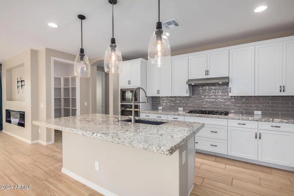 Beautiful corner cul-de-sac Fulton home. 3 bedrooms 3 bathrooms with a den/study. Bedrooms are all separated for privacy with their own bathrooms. This open floor plan is perfect for entertaining and has upgrades throughout the home. Open kitchen has a large granite island, SS appliances, gas cook top, R/O water system, tankless water heater. Family room has a fireplace. Walk into a spacious master bedroom with a large walk-In shower. Double sinks & spacious master closet. This 3-car tandem garage has epoxy floors with smart garage door opening for your security. Walk outside to a spacious patio and grass area for our little fury love one's. Great place to relax after a long day. BBQ with the family relax & enjoy living the true Arizona lifestyle!