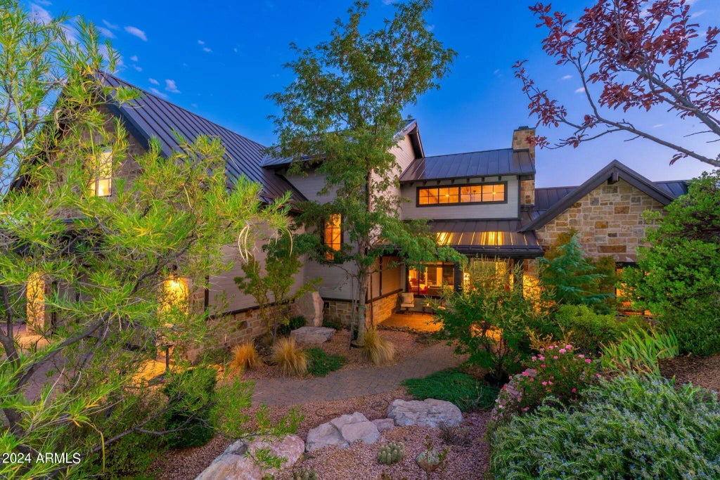 Discover the perfect blend of luxury and nature in this exquisite rustic home located in The Rim Golf Club. Featuring striking exterior stonework, this property boasts AMAZING VIEWS of the breathtaking Granite Dells Mountains, providing a serene backdrop for everyday living. Step inside to find wood floors that flow throughout most of the main level, complemented by beamed ceilings that enhance the home's charm. The beautifully landscaped yard invites you to unwind in peace, while the gorgeous kitchen is a chef's dream, equipped with a 6-burner Wolf gas range, a Subzero refrigerator, granite countertops, and a butler's pantry complete with a beverage cooler. The master suite offers a private retreat with a separate door leading to the back deck, perfect for morning coffee or evening stargazing. The luxurious primary bathroom features a stand-alone tub and a spacious walk-in shower, providing a spa-like experience at home. This is not just a home; it's a lifestyle. Don't miss your chance to experience the tranquility and beauty this property has to offer!