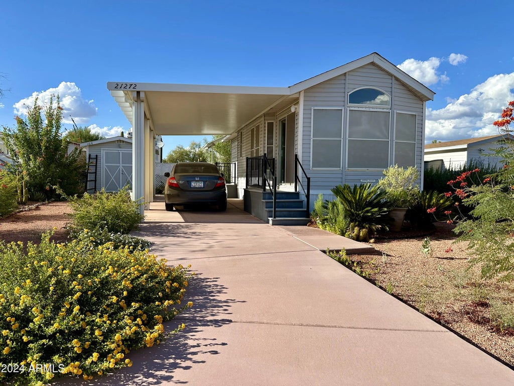 REDUCED BY $15,000.!!! IMMACULATE is ONE Word for this property. Very Well taken care of Park model, with extended carport. Back yard with landscaping and a privacy area. Trex like front and rear deck Entries. Inside is a front Great Room, Central Kitchen open to the Great room and 1 bath with step in shower. Master Bedroom has built in Vanity and Dresser Drawers Under the Closet for added Storage. The Shed is Finished Interior with a Washer and Dryer Included. Double Door Allows Golf Cart or ARV Parking Inside. The Extended Carport is all Concrete for your Enjoyment. Furnishings in House will Also Convey without Value.