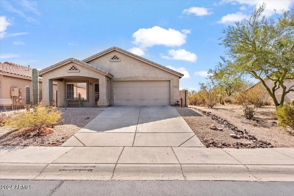 BRAND NEW HVAC system installed Sept. 2025 w/ 10 yr warranty. Highly sought after Dove Valley Ranch gated community in Cave Creek, this darling home enjoys views of Black Mountain to the north and a widespread wrap around desert wash out back, giving you only one direct neighbor. Idyllic privacy and peaceful views surround. A true 3-bedroom/ 2 bath, entry room can be used for a multitude of lifestyle needs. Open kitchen concept with continuous wrap around granite counters and center island. Ample cabinet storage, stainless appliances, gas range with natural light pouring in. Double French doors off the great room lead your living space to a beautiful backyard with newly laid turf and expansive paver patio. Flowing room to entertain and enjoy AZ living! Light wood floors carried throughout all bedrooms, granite counters in bathrooms, oil rubbed bronze fixtures consistent throughout the home. Ready to get outside... Enjoy trails woven throughout the community, play a round at the Dove Valley Golf Course nestled within the neighborhood at the end of the street. Designed to be player friendly and amongst the prettiest desert landscape you'll find around. Phenomenal restaurants home to Cave Creek just minutes away, incredible hiking experiences out your back door.
