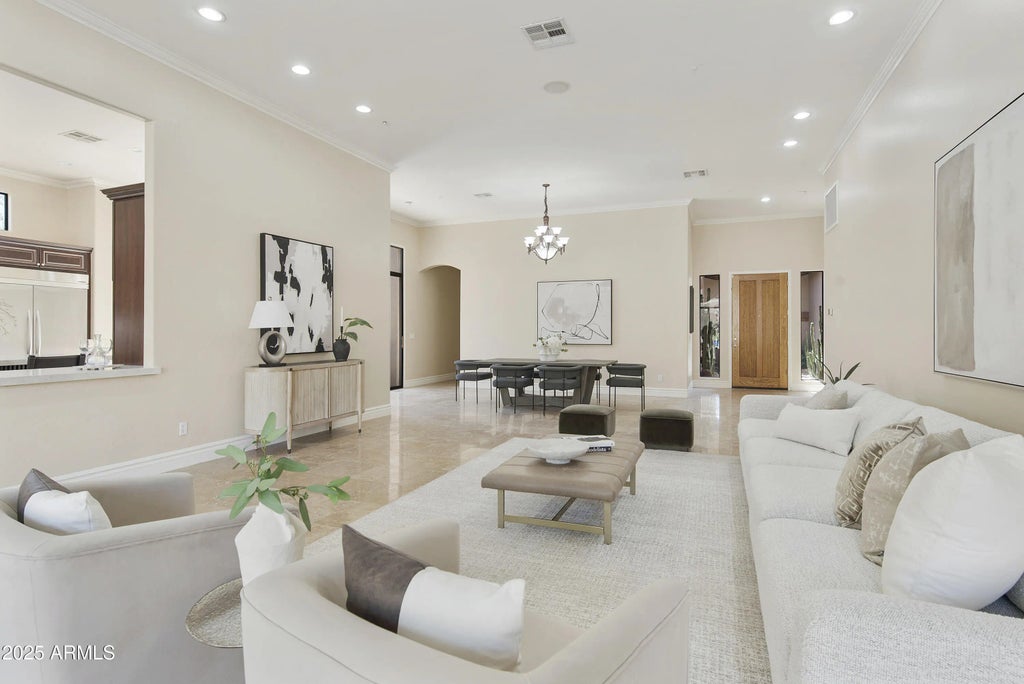 Make yourself comfortable in this spacious home in Scottsdale's Grayhawk community. Enjoy your private pool and spa. There is a community pool and Pickleball courts. The home is wonderfully complete with 4 ensuite bedrooms, a book shelf lined office that could be a fifth bedroom, and large great room.The Casita has a private entrance off the front courtyard. The pool is stunning with the added water features of a spa and fountains. This home is very spacious with high ceilings and a very open feel. The 3 car garage is a plus. There is a covered patio off the family room , built in barbecue area, another patio with a gas fireplace and a large fireplace off the courtyard. This is a wonderful home for entertaining and close to all that Scottsdale has to offer