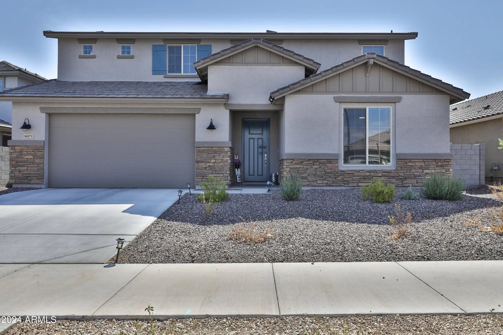 On the hunt for a new home? Here's a gorgeous and completed home in the heart of Sunrise- move in ready now! Very spacious Wrightson plan on premium, oversized lot. Check out the pictures! This home is gorgeous and perfect for buyers looking for a highly upgraded kitchen and a large lot with 900 sq ft of gorgeous pavers waiting for you to entertain. Buyers spared no expense with the upgrades in the home - Soft closing drawers, smart ceiling fans, faux wood blinds, oversized pantry, coffee station option added, smart home technology, stone front elevation, double sized patio, double glass sliding doors, just to name a few. Assumable FHA current loan at 4.9%, provided buyer can meet the loan qualifications required to assume.