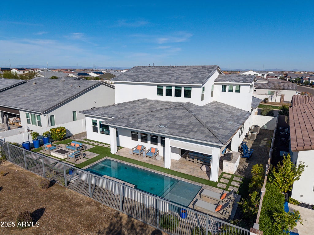 Golf course lot. Mountain/sunset views. Heated Pool. Oversized lot. The 90 degree slider takes the indoor-outdoor feel you are looking for, to another level! The Ballantyne's inviting covered entry and welcoming extended foyer reveal a spacious office and views to the expansive great room, casual dining area, and desirable covered patio beyond. The well-equipped kitchen (with FLOOR-TO-CEILING CABINETS), double oven, is complete with a large center island with breakfast bar, plenty of counter and cabinet space, and huge walk-in pantry. The elegant primary bedroom suite is highlighted by an ample walk-in closet and spa-like primary bath with dual-sink vanity, luxe glass-enclosed shower with seat, BATHTUB, linen storage, and private water closet... ...Secluded on the second floor overlooking an enormous flex room, secondary bedrooms feature walk-in closets, two with Jack-and-Jill bath, one with shared full hall bath. Additional highlights include a convenient powder room and drop zone, centrally located laundry, and additional storage. Golf cart negotiable. Spray Foam insulated walls. Upgraded AC units.