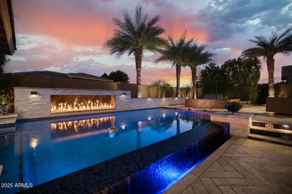 EXQUISITE 5-BEDROOM LUXURY HOME WITH RESORT-STYLE BACKYARD! This beautifully upgraded home features 4 spacious bedrooms with private baths for ultimate convenience and comfort. With the 5th bedroom converted into a stunning home theater, this home has a total of 4.5 baths , soaring 12-foot ceilings, and a game room! It's perfect for luxury living. Enjoy high-end appliances, custom finishes, and attention to detail throughout. Step outside to your private resort-style backyard with an infinity-edge pool, heated spa, sunken BBQ area, and cozy outdoor fireplace—ideal for entertaining. Solar panels provide energy efficiency. Solar Panels system to be paid off at Close of Escrow. Move-in ready and waiting to be your forever home. A must see!