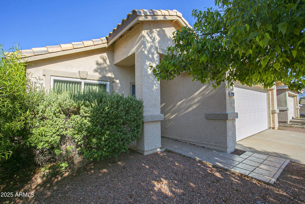 Neat house with dramatic vaulted ceilings, niches and cut outs and loaded with extras. OWNED! paid solar with approximately $15 p/m APS bills, all NEW WINDOWS throughout 2020, NEW AC 2022, roof replaced 2014 and inviting play pool. All laminate and tile flooring throughout, spacious walk in closet, garden tub, mirrored wardrobe doors, water softner, ceiling fans, doggie door, near new water heater and and freshly painted interior. Great turn key home.