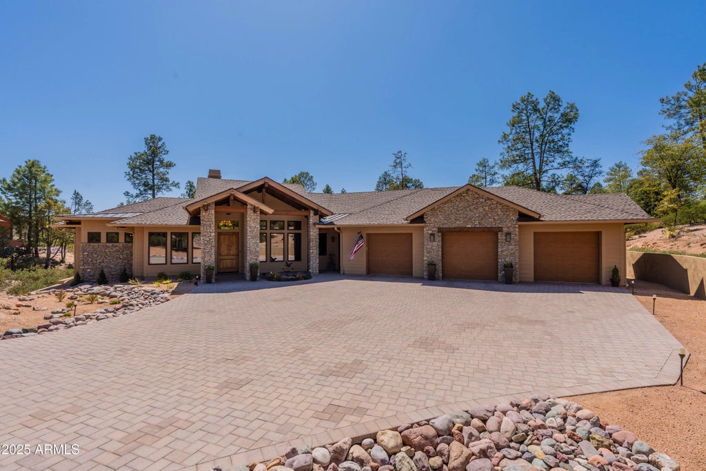 MOUNTAIN MODERN HOME WITH NEARLY 4,000 SQFT OF INDOOR/OUTDOOR ENTERTAINMENT SPACE — SPECTACULAR VIEWS OF THE FAIRWAY, PONDEROSAS & GRANITE DELLS - A TRUE RARITY TO HAVE ALL 3 UNDER A MASSIVE WOOD-BEAMED PATIO— Nestled in the heart of Arizona's stunning Rim Country, this exceptional Mountain Modern single-level home offers 2,786 sq. ft. of luxurious living space, all with breathtaking views of the Granite Dells and one of Chaparral Pine's finest fairways - Hole #10. This recently built custom ranch home offers unparalleled privacy and tranquility, with stunning views on a sprawling three-quarter plus acre private lot (.83), featuring lush landscaping and towering ponderosa pines. It's an entertainers dream with more than 3,800SqFt of space to hosts all your guests. The seamless sing Come See This Gorgeous Mountain Modern Home Nestled in the heart of Arizona's stunning Rim Country, this exceptional Mountain Modern single-level home offers 2,786 sq. ft. of luxurious living space, all with breathtaking views of the Granite Dells and one of Chaparral Pine's finest fairways - Hole #10. This recently built custom ranch home offers unparalleled privacy and tranquility, with stunning views on a sprawling three-quarter plus acre private lot (.83), featuring lush landscaping and towering ponderosa pines. It's an entertainers dream with more than 3,800SqFt of space to hosts all your guests. The seamless single-level Great Room and Outdoor Patio will WOW your family and guests alike. Designed for both comfort and elegance, you'll be welcomed by beautiful stone pillars and a wood-beamed porch with no-fuss landscaping and warm lighting. Upon entering the home, you'll be welcome by an oversized knotty alder door that leads into an expansive dining & great room area and a gorgeous chef-inspired kitchen. The open-concept design seamlessly connects to an oversized patio and peaceful landscape, creating the perfect backdrop for relaxation and entertainment. The highlight of the home is its incredible 1,100 sq. ft. ceramic tile patio, providing ample space for outdoor gatherings and taking in the stunning views. The seamless flow between the single-level great room and the patio makes this home ideal for hosting family and friends in a setting that's both private and picturesque. Whether you're relaxing in the luxurious interiors or enjoying the fresh mountain air outdoors, this home is designed to offer a lifestyle of comfort, elegance, and natural beauty. And that's not all!!! Entertain your guests with a delicious cocktail in the evenings or a hot coffee in the morning with one of two beverage bars with high-end granite, custom pull-out fridge and icemaker drawer. When it time to retire for the evening, you'll be treated to a spacious master suite, complete with a spa-like en-suite bathroom, while your guests will be invited to choose between two private en-suites of their own featuring the ultimate in convenience and quite comfort. And don't forget to visit your unique ''Mountain Overlook'' - sort of a private zen spot with a terrific view of the 10th Fairway with the Granite Dells in the distance. Sit back, relax, unwind and enjoy a beverage while you surround yourself with all the splendor of Chaparral Pines & Payson. This home truly captures the essence of mountain living with modern luxury. Don't miss out on the opportunity to make this exceptional property your new home. Schedule a private tour today! KEY FEATURES: - Large Great Room with 16-ft Ceilings for enhanced exterior view - Coffee Bar & Beverage Bar with custom fridge & icemaker - Chef's Kitchen with 6-Burner Gas Stove - Extended Length 3-Car Garage (24ft in Length) w/Enclosed Storage Closet - Golfer's Overlook - view of the Granite Dell's & 10th Fairway - Sprawling 1100 Square Foot Patio with lush landscape views & custom fire pit - Large Office Space & Additional Library Room - Insulated foam throughout the house including the garage - Stone & Wood Beam Accents in the Entry & Patio - Custom Paver Driveway And there's so much more!!!!!