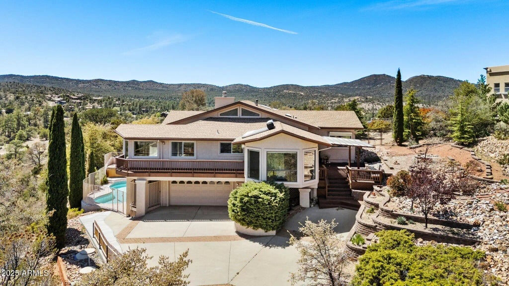 This stunning home in Vista Del Cerro Estates offers luxurious living w/ breathtaking views & a private pool! Vaulted ceilings, tile flooring, & skylights create a bright, airy feel throughout. The open living room, complete w/ a cozy fireplace, invites you to relax in comfort, while the formal dining room & breakfast nook provide perfect spaces for meals & gatherings. The kitchen boasts granite countertops, stainless steel appliances, & plenty of storage. A study & office provide ideal workspaces. The spacious primary bedroom offers deck access & a huge walk-in closet w/ built-ins! Additional bedrooms provide comfortable options for guests, making hosting a breeze. Enjoy movie nights in the media room & year-round relaxation in the Arizona room. Come see this stunning home today!