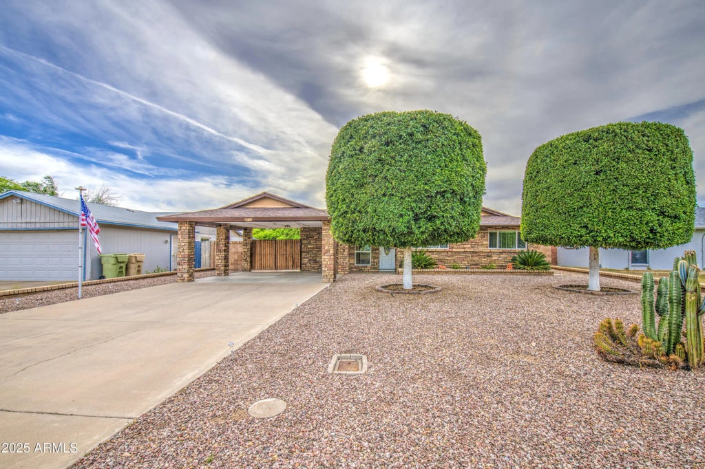 BRAND NEW HVAC system installed August 2025. Other updates to this single level, 3 bedroom, 1.75 bath home in recent years include whole house sewer replacement, exterior paint and stone accents, dual pane windows, roof, and stainless steel kitchen appliances. It is situated adjacent to Heritage Park in a family and pet friendly neighborhood that is centrally located. Come enjoy close proximity to parks (including Sahuaro Ranch Park) and schools as well as convenient access to both freeways and shopping centers like the Glendale Galleria and the Westgate Entertainment District. The large primary bedroom has an ensuite bathroom with standing shower. An RV gate opens to a well-kept backyard that offers space to store vehicles, two sheds, two mature citrus trees, and a covered patio.