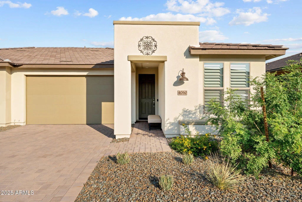 This charming Duet represents care free living at its finest. Located in Wickenburg Ranch and the HOA takes care of all of your landscaping including front and backyard, which makes this ideal for not only full time living, but also lock and leave freedom. Nestled in the peaceful neighborhood of Palomino, this splendid residence boasts 2 bed, 2 baths, and a fully built out office. Step onto the east facing extended paver patio and find an incredible mountain view providing an idyllic space for relaxation and outdoor gatherings. This home is ready to embrace its new owners. Residents also have access to a plethora of amenities, including a beautiful golf course, fitness center, a resort swimming pool, and much more.Don't miss the opportunity to make this home your own