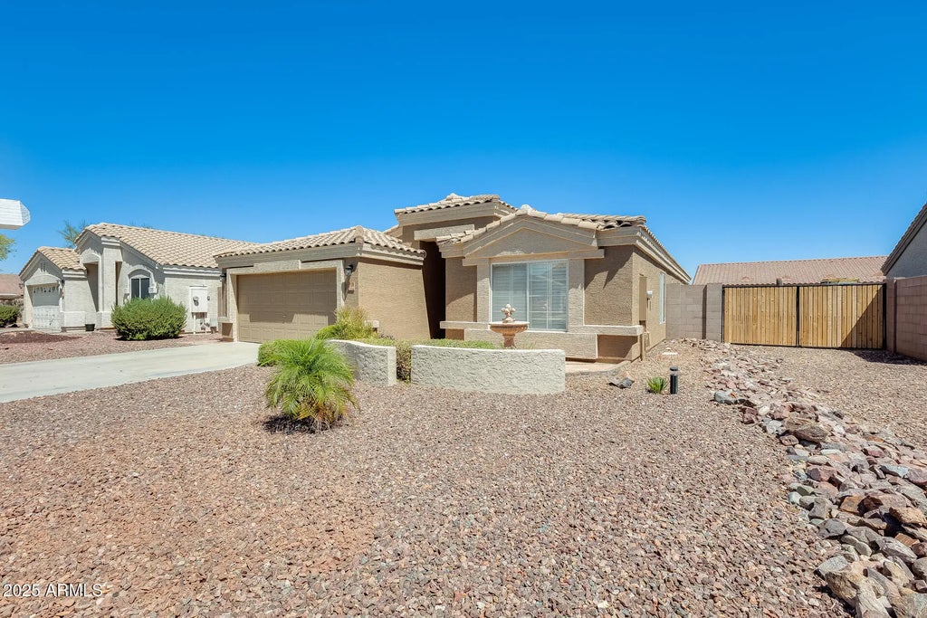 Welcome to your private oasis in a gated community—just minutes from top-rated schools! This well-maintained 4-bed, 2-bath home offers 1,934 sqft of living space, featuring an open floor plan with soaring vaulted ceilings, a spacious family room, and elegant formal living and dining areas. The kitchen seamlessly flows into the family room, where large windows showcase the low-maintenance backyard with a sparkling play pool and rock water feature. Retreat to the generous master suite with a walk-in closet and spa-like bath, complete with a soaking tub and separate shower. Enjoy outdoor living year-round under the covered patio surrounded by pavers, perfect for entertaining. With a 2-car garage and RV gate, this home blends comfort, style, and convenience in an unbeatable location.