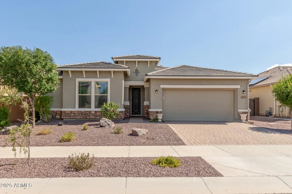 Seller is offering 2% in closing cost assistance with strong offer. Stunning 4-bedroom, 2.5-bathroom home offering mountain views. This meticulously maintained property features 10-foot ceilings, an upgraded kitchen with modern finishes, a luxurious primary bath with an oversized walk-in shower and separate soaking tub, and a spacious 3-car garage. All bedrooms include large walk-in closets and plush carpet. The backyard is a true oasis, showcasing a pergola, turf, professional landscaping, and a view fence overlooking green space—perfect for entertaining or simply unwinding. The home also offers plenty of storage throughout, with generous closet space, cabinetry, and an open-concept layout. Sold with all appliances, including washer and dryer, this move-in ready gem is everything you've been waiting fordon't miss your opportunity to make it yours! Located within walking distance to both the elementary and high school, and just minutes from the new Surprise community pool and park, as well as White Tank Regional Park for hiking and outdoor adventures, this home combines comfort, style, and unmatched convenience.