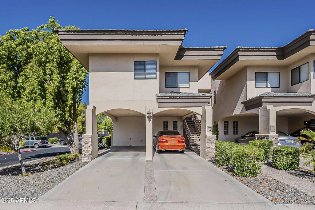 Step inside this inviting Camelback Fountains condo, where comfort meets convenience in a secure, gated community. Thoughtfully updated with granite countertops and matching stainless steel appliances, the kitchen blends style with everyday functionality. A cozy fireplace anchors the living area, creating a warm atmosphere that makes the space feel like home. Whether you're sipping coffee on the balcony (which includes a storage closet) or hosting a relaxed evening in, the layout offers a sense of calm and flow. Just outside your door, enjoy access to a well-maintained community pool and spa perfect for unwinding after a long day. Located in the heart of the Biltmore-Arcadia corridor, you're minutes from top-rated dining, shopping, and cultural spots. This home strikes the ideal balance between quiet retreat and vibrant city access!