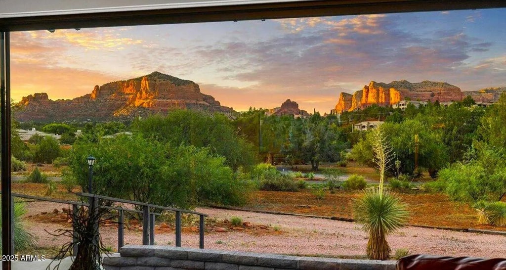 Nestled in the tranquil community of Rancho Rojo, Sedona, this enchanting 1-acre property offers a sanctuary of natural beauty and sophisticated living. Perched atop a hill, the residence commands stunning views of Sedona's iconic red rock panoramas, creating a canvas of breathtaking beauty marked by mature trees and expansive outdoor possibilities. As you approach the farmhouse-style one-level home, a sense of anticipation builds. This is not merely a house; it's a canvas where dreams come to life. Imagine crafting your own oasis here, with room for a shimmering pool surrounded by desert flora, equestrian stables that whisper of adventure, or even a lively pickleball court for fast-paced fun. 2MM + homes surround this property. Most of the furniture conveys. Unique and well-maintained.