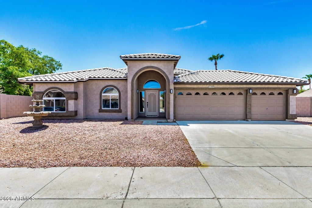 Completely Remodeled Single-Level Gem with Pool & No HOA! Welcome to this beautifully updated 4-bedroom, 2-bathroom home featuring modern upgrades and an open, spacious layout! Situated on a desirable lot with NO HOA, this property offers a rare combination of luxury, functionality, and freedom. Step inside to discover vaulted ceilings, brand new LVP flooring, and a stunning gourmet kitchen equipped with white shaker cabinets, a large quartz island, new stainless steel appliances, and stylish fixtures throughout. Both bathrooms have been fully remodeled with a designer touch, making this home move-in ready from top to bottom. Enjoy year-round comfort in your newly resurfaced pebble sheen pool, complete with both heater and chiller, perfect for Arizona's changing seasons. The 3-car garage offers plenty of room for all your toys and storage needs. Plenty of room to add an RV gate! Located just minutes from freeways, shopping, dining, and morethis home has it all. Don't miss your chance to own this incredible turn-key property! Sprinkler system was shut off while pool was being resurfaced and grass died. Grass should be green again in a week or so.