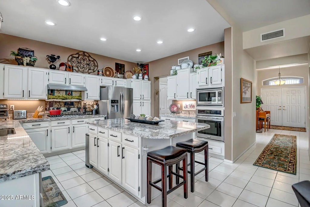 Some homes just get it, and the Cottonwood floor plan is one of them. Step through the double doors and into a welcoming foyer that opens into a flexible great room—perfect for living, dining, dancing, or an impromptu art gallery. The kitchen is a stunner—granite, center island, sleek lighting, and a 36-inch, 5-burner stove that'll turn every meal into an event. It flows into a sunny den with fireplace and also into a breakfast nook—ideal for pancake Sundays or fireside Netflix binges. And this home's resume is stacked with updates. Two newer HVAC units, a fresh roof underlayment, sleek appliances, and even attic plywood storage for all your holiday hoarding. Love cozy evenings? Enjoy the den with fireplace and large TV area. The master suite is a true retreat, featuring a bay window, sitting area, barn door, and spa-like bath. And your guests will love their oversized suite just as much. Outside, relax under the extended covered patio or soak your stress away in the luxury heated spa surrounded by lush landscaping and total privacy. Spa day, every day. From the smart updates to the private backyard oasis, this home has style, comfort, and just the right amount of "wow. This is what the adult lifestyle in Sun City West is about, daily activities and a home to cherish.