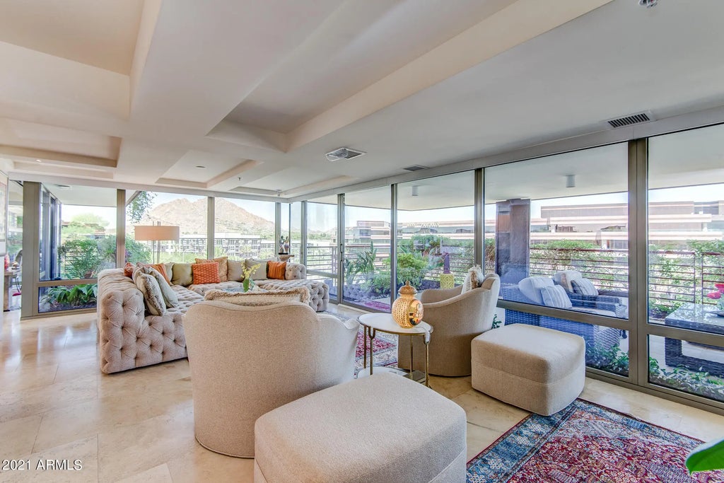 This is it. Welcome to this truly special one-of-a-kind Optima Camelview treasure. Designed & originally owned by the developer of this state of the art award winning community. Boasting 4 Bedrooms, 2 Baths, 2,590 sqft, ~1000 sqft of both covered and uncovered terrace space & the most breathtaking Camelback Mountain & McDowell Mountain Views. This unit features a fantastic open floor plan, endless floor-to-ceiling glass, 3 Patio/Terraces (perfect for relaxing & entertaining), a natural gas piped in bbq, fire pit and fire place, designer finishes through-out, automated blinds & so much more. The master suite is extremely spacious w/ a huge walk in closet (w/ its own window!) & a very large bath. This property includes two spectacular side-by-side parking spaces & a private storage unit! All found within the luxurious Optima Camelview Village, with it's unbeatable location & state of the art architecture/amenities. Amenities include: Two Outdoor Zen Pools, Spas & Bbqs One on each side of the community (heated year round). 24,000 sq. ft. Fitness Center (Recently Remodeled). Mens & Womens Locker Rooms w/ Steam Rooms, Showers and Private Lockers. Indoor Lap Pool & 2 Spas (Heated year round), On-site concierge, Putting green, Hybrid Basketball / Pickle-ball Court, Racquet ball court, On-site restaurant (metropolis), conference room, 24/7 Security, Reservable party room and multi-purpose fitness/yoga room.