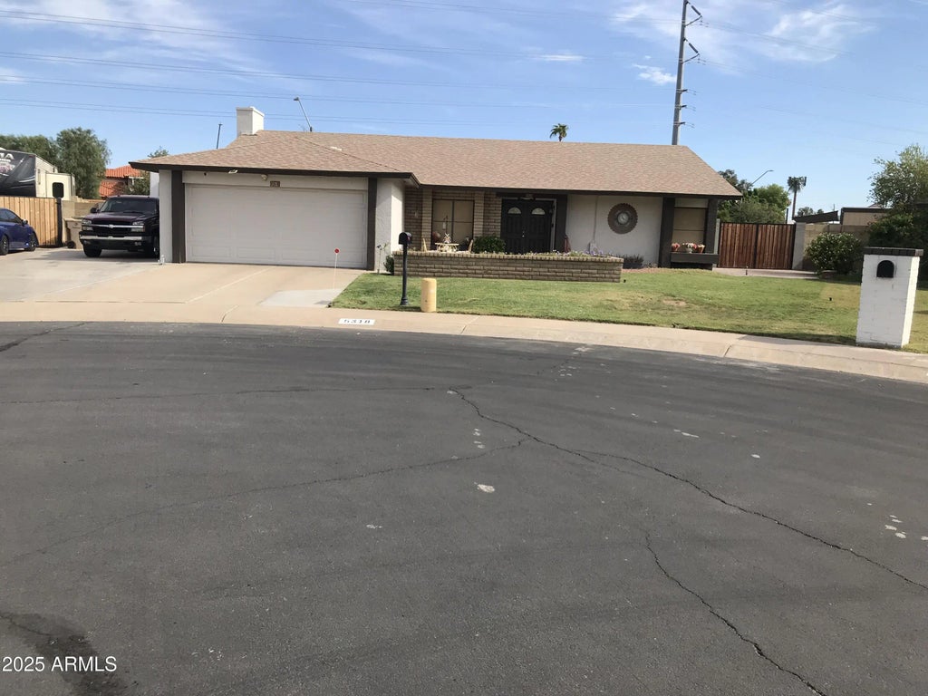 This is an RV Owner's Dream Home. (2) RV Gates. Concrete driveway on the west side/w a 14' Gate, 50 amp electrical and RV dump. Room for a 40' RV. East side 16' brick path,10' RV Gate/w another 16' brick path into Ex-Large backyard. (3) patios. 3'x8'x30' deep mini pebble tec pool. (3) metal cactus gardens w/ solar lights. Covered heated Spa. Lighted 12' x 8' wood Pergola/w 2 benches & 7' bar/w 6 bar chairs. (2) 4'x7' BBQ soft covered Gazebos /w Gas/Charcoal Grill under 1 & a 5' stainless steel table under the other. Red wood cedar corral/w wood fire-pit table & 4 chairs. (2) sheds. UPDATES: Exterior Painted, Sewer line replaced 2025. Kitchen has custom white cabinets & granite countertops/w under mounted black granite sink /w 9' breakfast bar. Glass hood. Plank flooring in main areas. 18"x18" Tiled: Primary Bedroom, Walk-in Closet/w attached white Ironing board & shoe racks. Bath has exit door leading to pool area. Fm Rm/w wood burning fireplace. Also quiet second Fm/Rm area leading out to backyard. Inside LndyRm going to 2 car garage/w small step-up work area/w 220 AMP. Separate DnRm area. Step-down LvRm/w 65" TV. Front yard has an uncovered brick patio. 2' high brick border wall with purple flower hedge. Sunscreens on all windows. This is a must see!!!