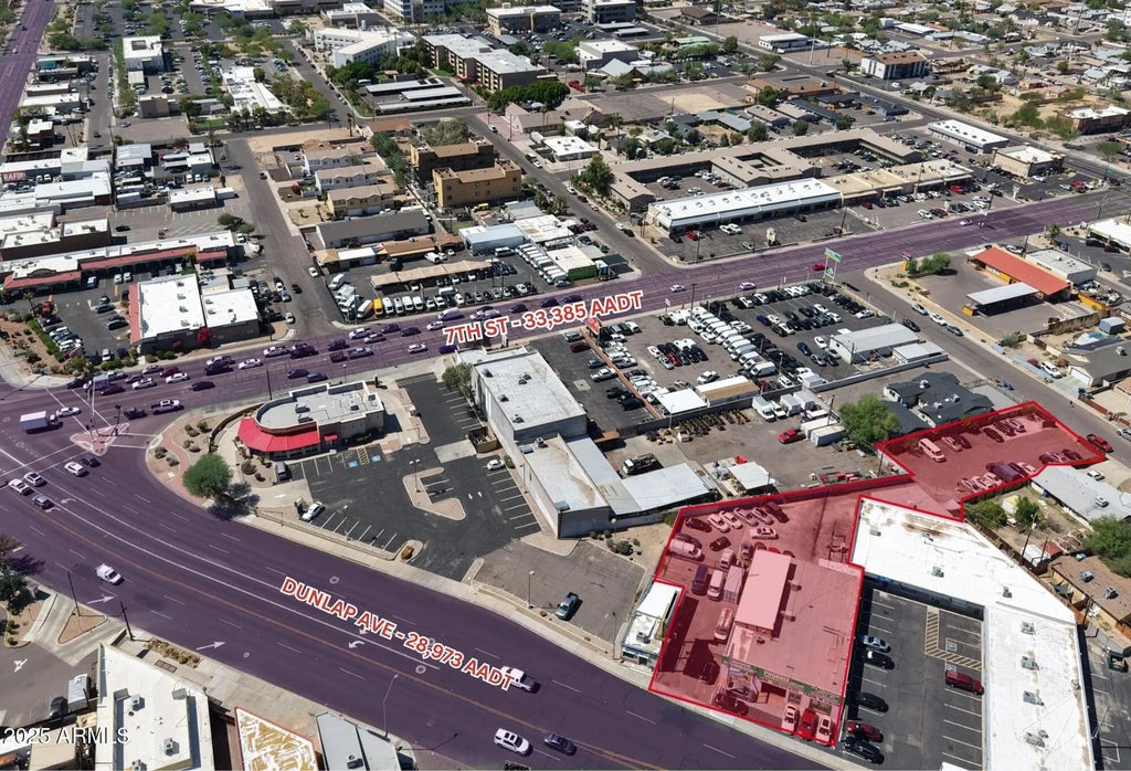 This property offers an ideal combination of showroom, office, and yard space, perfectly suited for auto-related businesses. Located in the heart of Central Phoenix, it sits just steps from the busy 7th Street and Dunlap intersection, ensuring strong visibility and consistent traffic. With C3 zoning already in place, the site provides maximum flexibility for auto sales, showroom, or office use. The expansive yard can accommodate more than 80 vehicles, making it a rare find in such a prime location. Whether you're looking to expand your dealership or open a new showroom, this property delivers the space, exposure, and zoning to support your success.