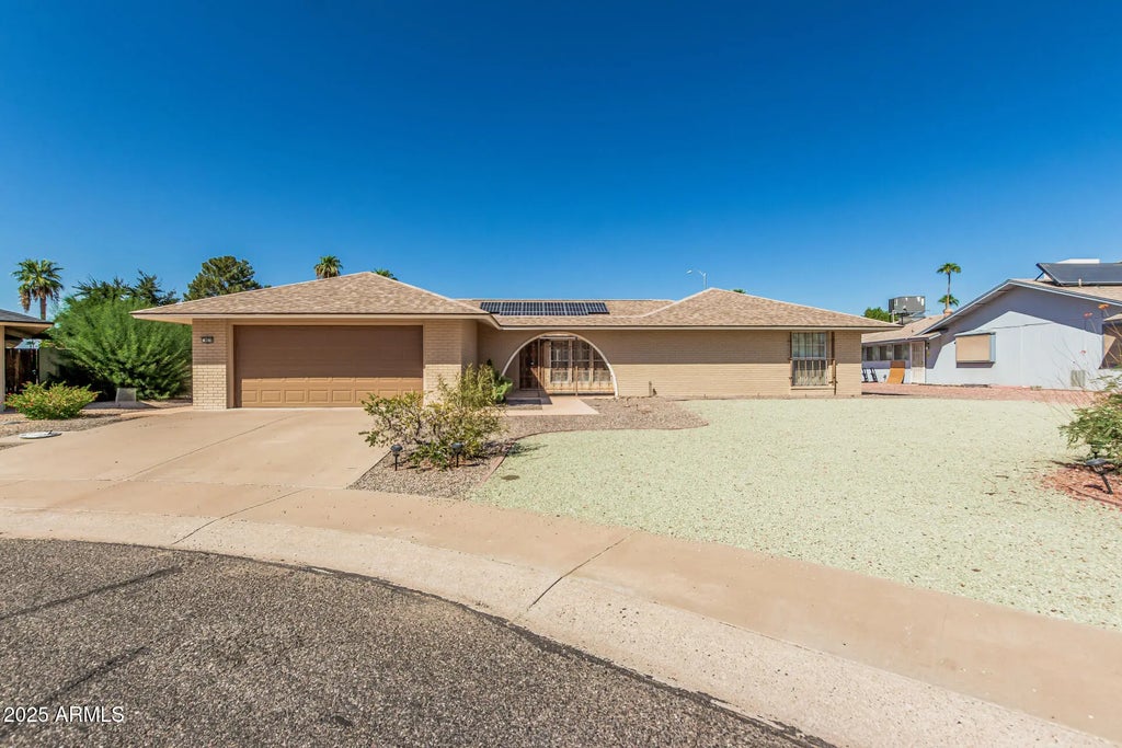 A gorgeous 3 bed, 2 bath residence in Sun City is now for sale! Nestled on a premium cul-de-sac lot & featuring great curb appeal, an easy-care landscape, and a 2 car garage. Inside you will find spacious dining & living areas w/elegant wood-look flooring and neutral palette throughout. The galley kitchen is equipped w/ample cabinet & counter space, recessed lighting, and all the built-in appliances you'll need for home cooking. The primary suite showcases a private ensuite and a walk-in closet for all your belongings. Lastly, the sizeable backyard includes a covered patio where you can sit back and enjoy a relaxing summer evening! What are you waiting for? Act NOW!