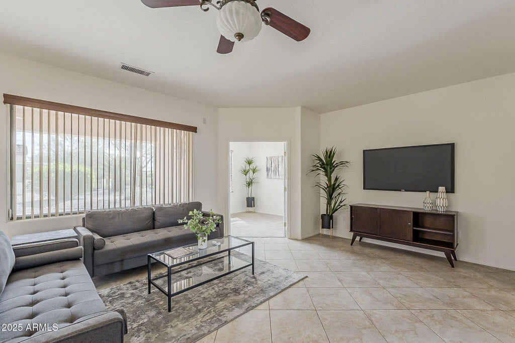Amazing opportunity to own an updated Desert Rose model in the vibrant 45+ community of The Grand! Just installed quartz countertops, brand-new carpet, and fresh interior paint. Recent updates include HVAC, water heater, and new LG washer/dryer. This open-concept home offers 2 bedrooms plus a versatile office/flex room, 2 bathrooms, and generous storage with pantry, coat, and linen closets. The spacious primary suite features double sinks and a large walk-in closet. Enjoy resort-style living with access to 4 championship golf courses, fitness center, day spa, pickleball, tennis, bocce ball, softball, fishing lakes, pet park, lawn bowling, and miles of walking/biking trails. Don't miss this move-in ready gem!