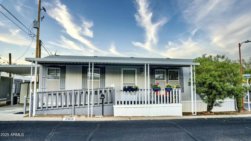 This 3 bedroom 2 bath home was built in 2006! It sits on a beautiful corner lot, and has a convenient ramp leading up to the front door. It has a split floorplan, two closets in the primary bedroom, One is a walk in closet, breakfast bar, new refrigerator, dishwasher, and a new microwave. Washer and dryer are included along with detached storage shed. This is a great location, close to shopping, restaurants, in the age restricted and gated community of Holiday Spa. The community offers a heated pool, hot tub, workout room, billiard room and a clubhouse with a kitchen, also offers free RV storage. This home is move in ready! Even has a covered front porch for taking in the relaxing mountain views.