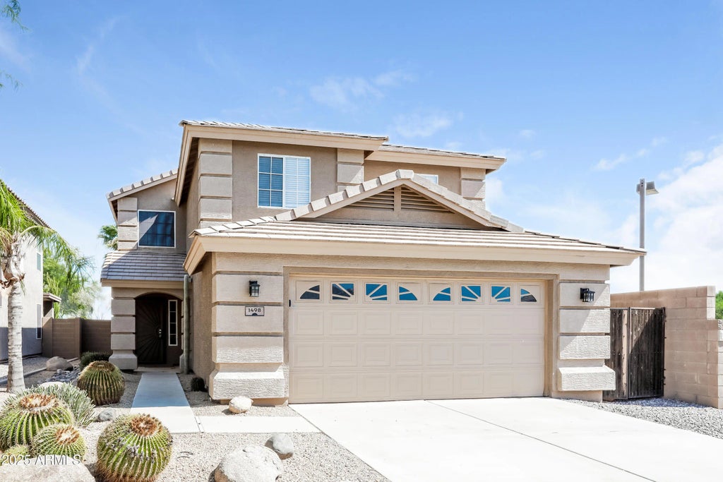 Spacious Home with Pool in a Prime Location! Experience space, style, and comfort in this beautiful 4-bedroom, 2-bath home located in a highly sought-after community. With 2,337 sq ft of living space on a generous 10,276 sq ft lot, this home offers the perfect blend of elegance and functionality. The open great room and loft provide versatile living areas, while the kitchen features custom countertops, an island, and a breakfast bar—ideal for entertaining. The primary suite upstairs includes a walk-in closet and full bath for added privacy. Step outside to your covered back patio overlooking a sparkling pool and spacious yard, perfect for relaxing or gatherings. Complete with a 2-car garage plus 2 additional slab parking spaces, and conveniently close to Johnson Ranch Golf Club, local shops, San Tan Mountain Regional Park, and more, this home offers the best of Arizona living!