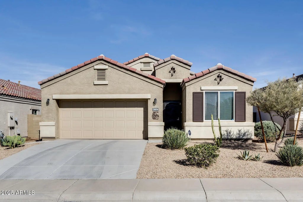 GORGEOUS, IMMACULATE, TURN KEY! This stunning 4 BR, 2 BA home w/ heated Pebble Tec pool is sure to impress! The owners are snowbirds, so the home is barely lived in! Great room floor plan w/ split bedrooms. Modern kitchen w/ espresso cabinetry, granite counters, subway tiled backsplash, gas range & island breakfast bar overlooking the great room. Owner's suite w/ walk in closet plus private bathroom w/ stylish barn door, double sinks & walk in shower. Relax in your tranquil backyard oasis w/ sparkling pool & solar lighting for nighttime enjoyment! Located in the beautiful community of Tartesso, just 3.5 miles off I-10. Enjoy tons of activities: walking & biking trails, playgrounds, baseball, soccer, tennis, basketball, volleyball & a fun splash pad! Other nice features include 2 car garage w/ epoxy coated floors, storage cabinets & add'l GFCI outlets; New security door; recessed lighting installed in kitchen, dining area & hallway; epoxy coated back patio, a delicious orange tree, new concrete walk way from front gate to backyard, owned water softener, reverse osmosis system, new shower door in primary bathroom, storage cabinets in laundry room, Ring doorbell system, Aqua Connect (device to monitor pool, filter, temp) & ADT Security system (equipment to convey but there is a monthly fee to monitor it).